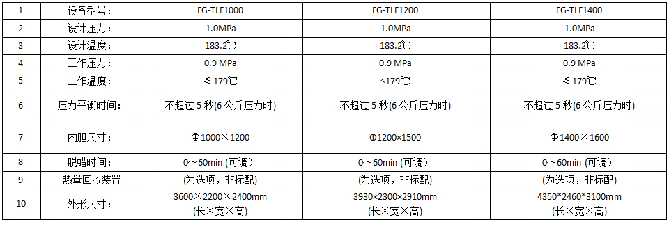 3. 快速 福格電熱脫蠟釜本機(jī)為雙膽壓力容器,壓力平衡快,壓力平衡時間可以在一定的情況下進(jìn)行調(diào)節(jié).